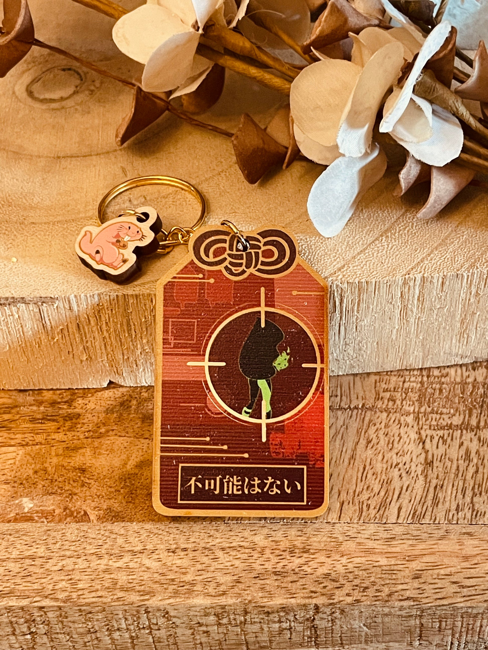 Ogni omamori è realizzato su legno, con illustrazione originale firmata Chlexart, e nasconde all’interno una piccola frase simbolica, pensata per trasmettere l’essenza del personaggio rappresentato: