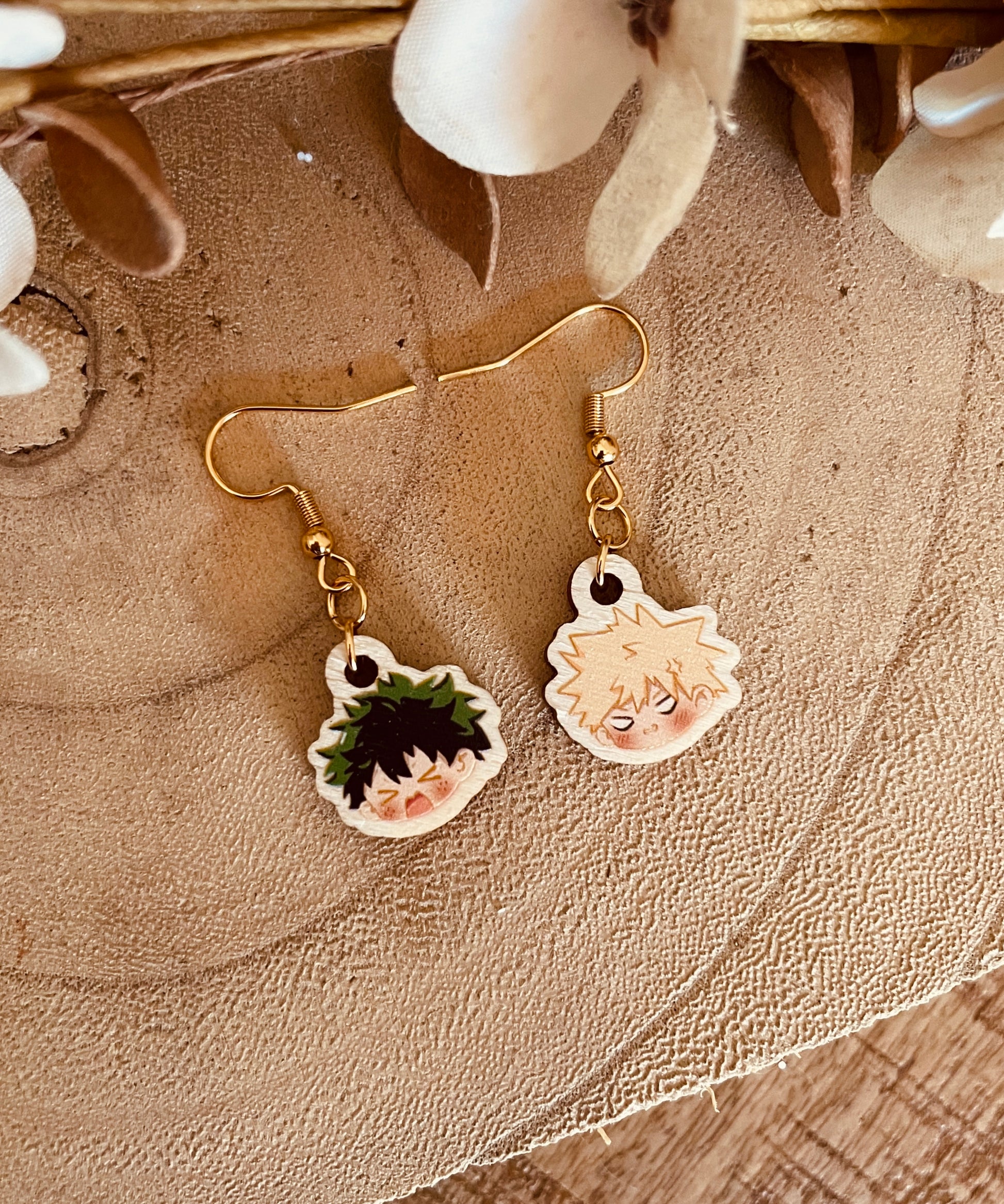 Questi orecchini sono leggeri e delicati, composti da un ciondolo in legno illustrato digitalmente di circa 1,5cm. La monachella e gli anellini sono in acciaio dorato anallergico, perfetti anche per le pelli più sensibili.