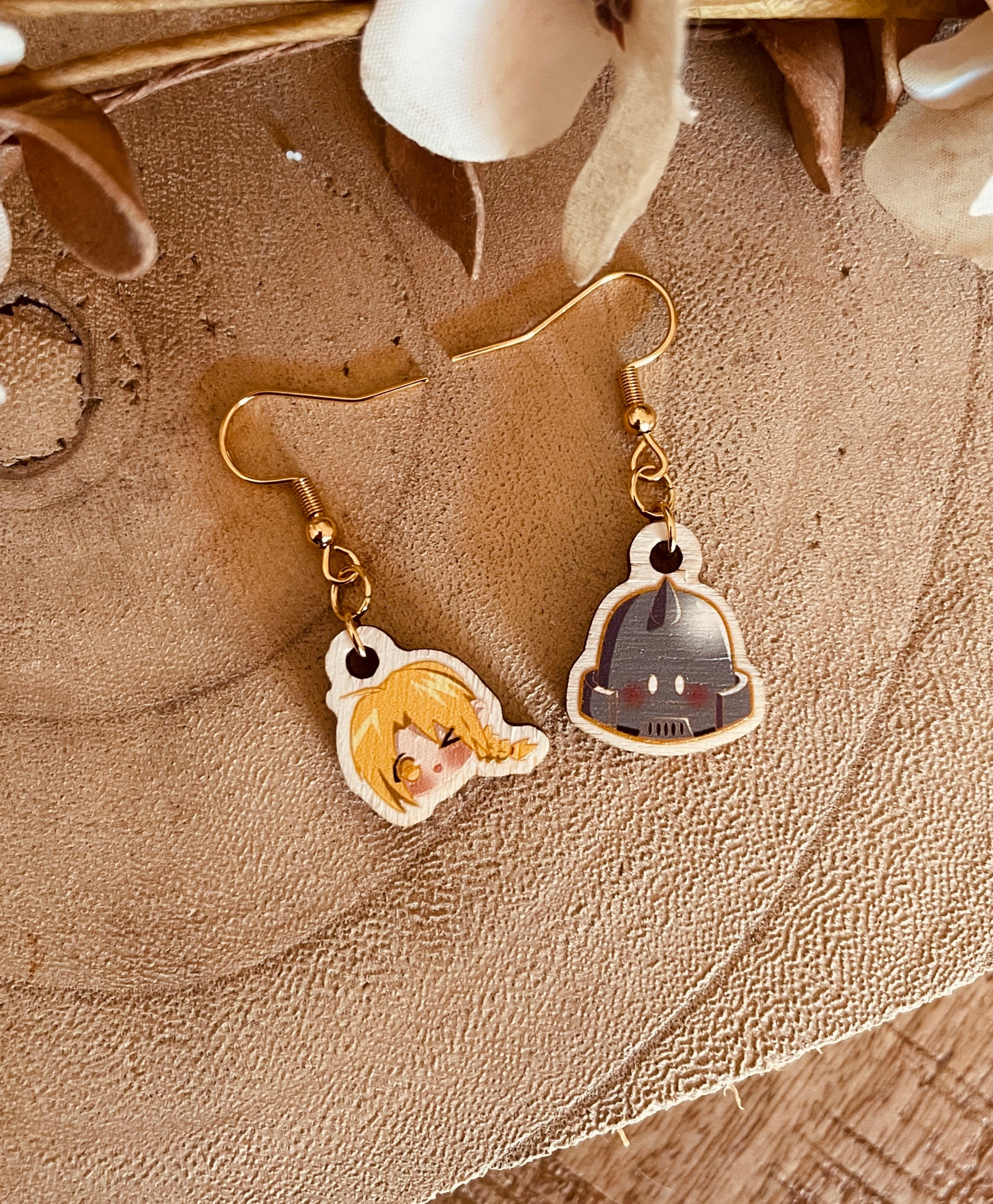 Questi orecchini sono leggeri e delicati, composti da un ciondolo in legno illustrato digitalmente di circa 1,5cm. La monachella e gli anellini sono in acciaio dorato anallergico, perfetti anche per le pelli più sensibili.