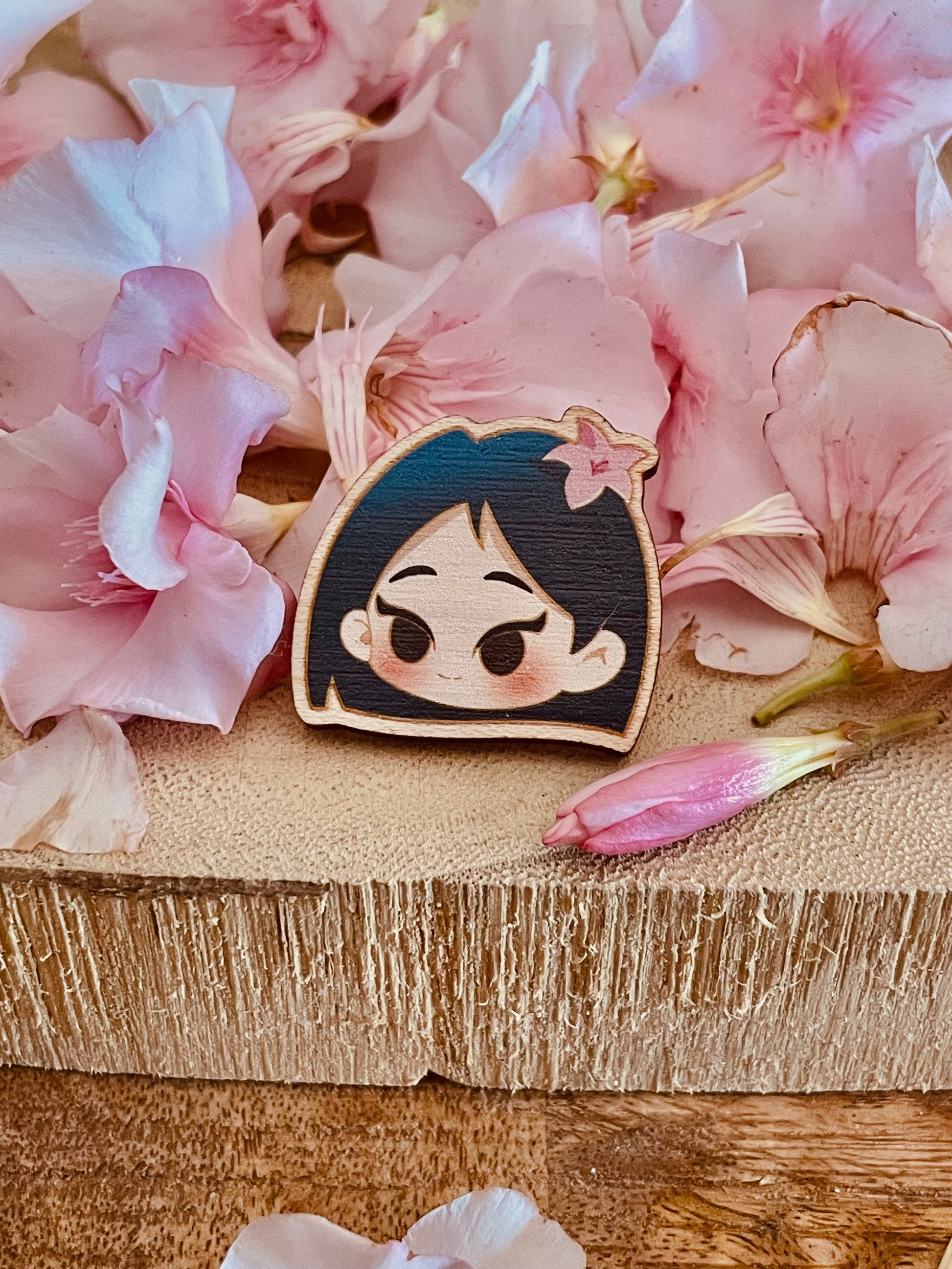 Ogni spilla è stampata su legno naturale spesso 4 mm e misura circa 3 cm: leggera ma resistente, perfetta da applicare su borse, zaini o giacche .