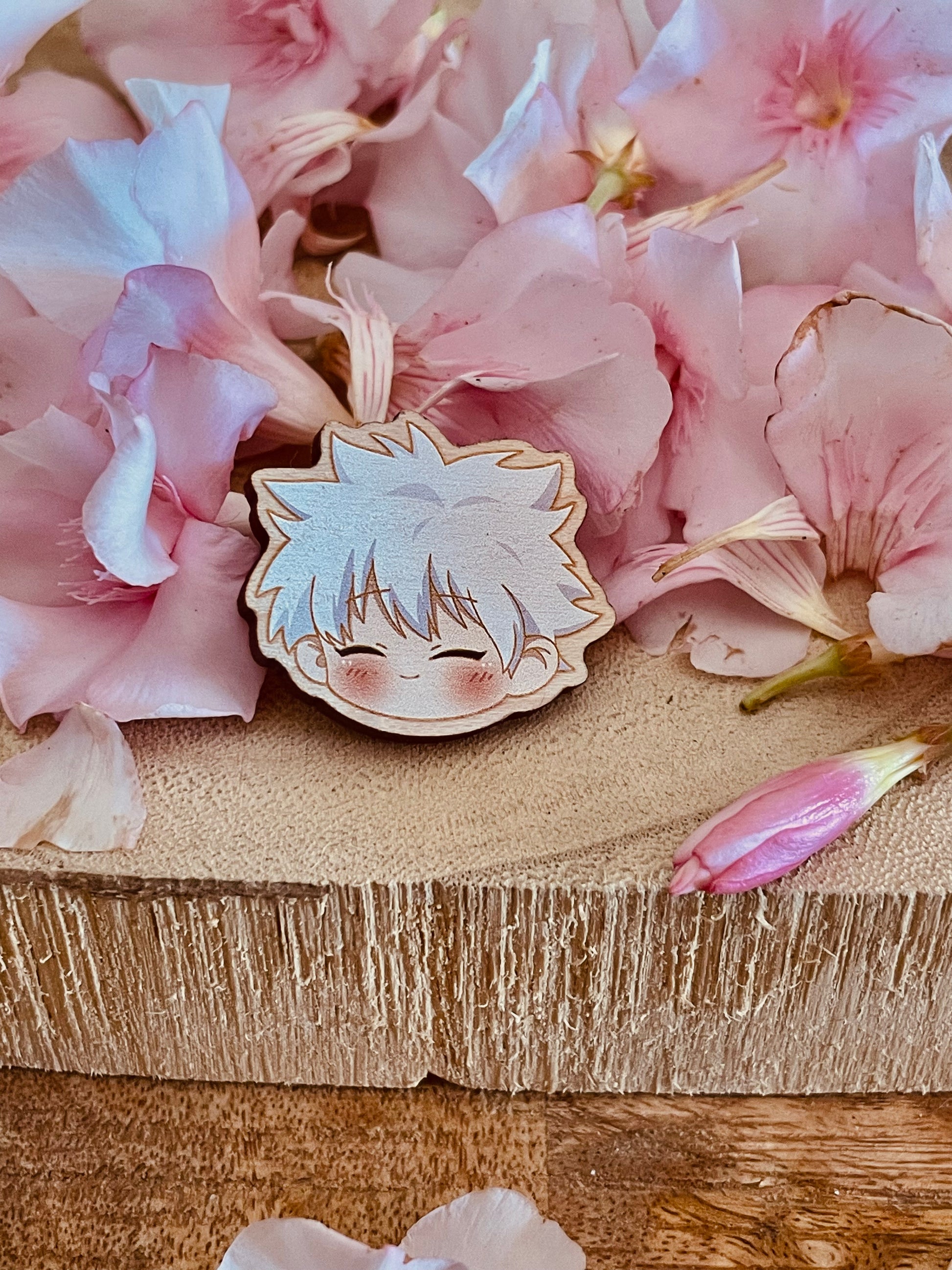 Ogni spilla è stampata su legno naturale spesso 4 mm e misura circa 3 cm: leggera ma resistente, perfetta da applicare su borse, zaini o giacche .