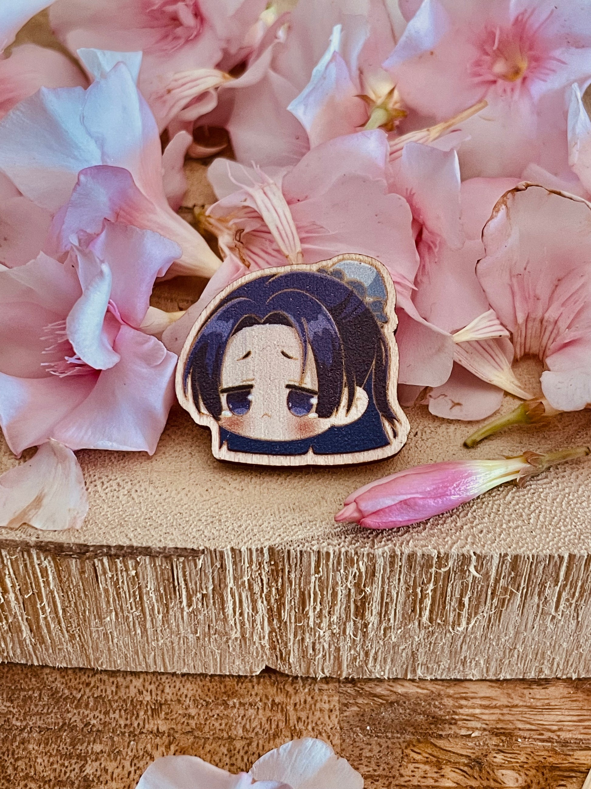 Ogni spilla è stampata su legno naturale spesso 4 mm e misura circa 3 cm: leggera ma resistente, perfetta da applicare su borse, zaini o giacche .