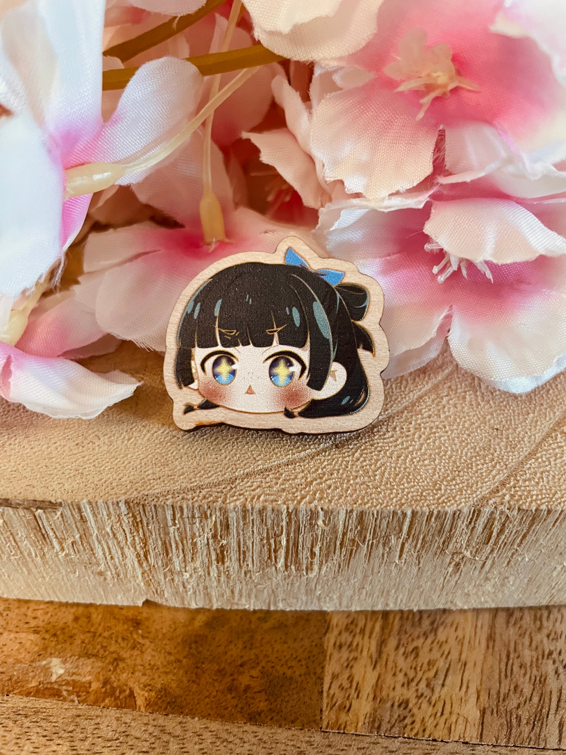 Ogni spilla è stampata su legno naturale spesso 4 mm e misura circa 3 cm: leggera ma resistente, perfetta da applicare su borse, zaini o giacche .